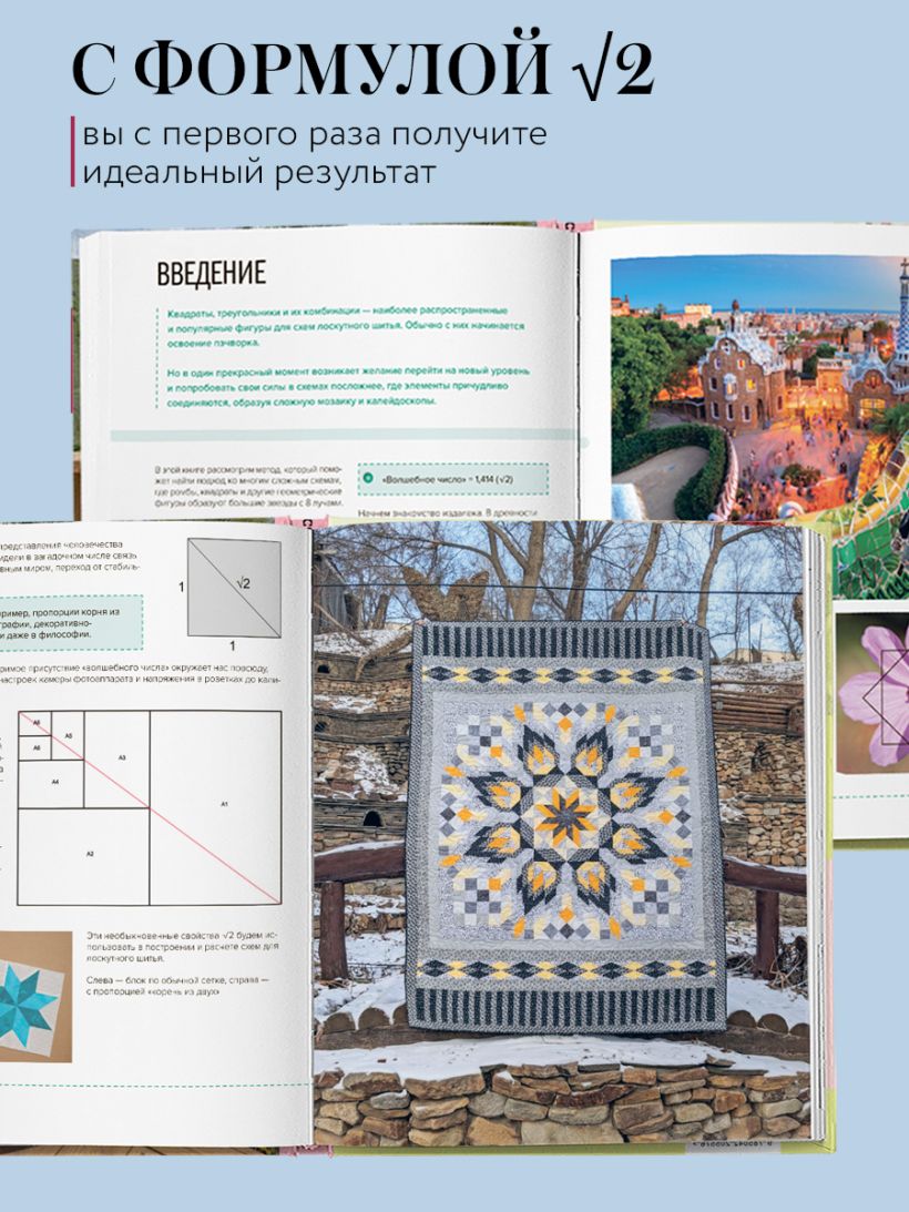 «Формула идеального пэчворка. Лоскутное шитье без сложных расчетов!» — уникальное руководство по лоскутному шитью, в котором гармоничные пропорции создаются легко и просто благодаря авторскому методу, основанному на «волшебном числе» √2, встречающемся в природе и искусстве.