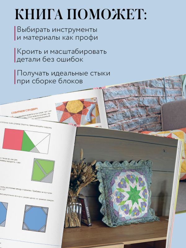 Погрузитесь в увлекательный мир пэчворка, где точность сочетается с творчеством, а каждая работа приносит радость! Книга станет вашим любимым руководством и источником вдохновения. Попробуйте — и убедитесь сами!