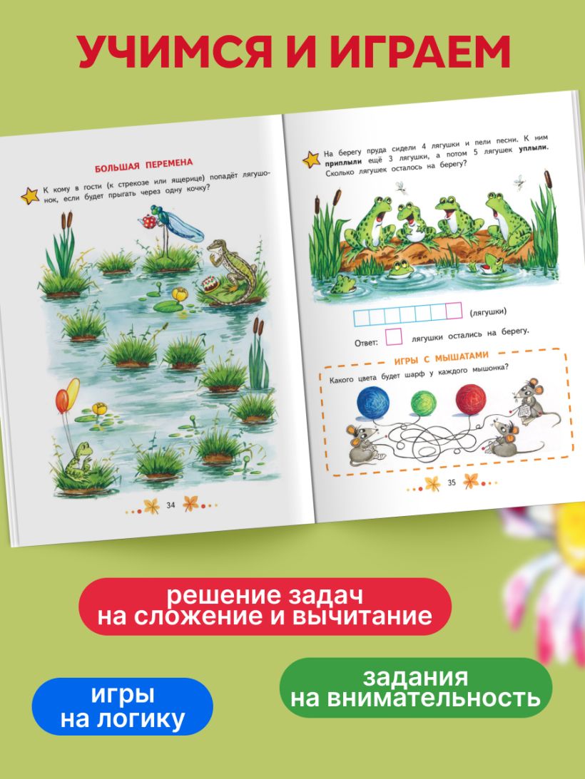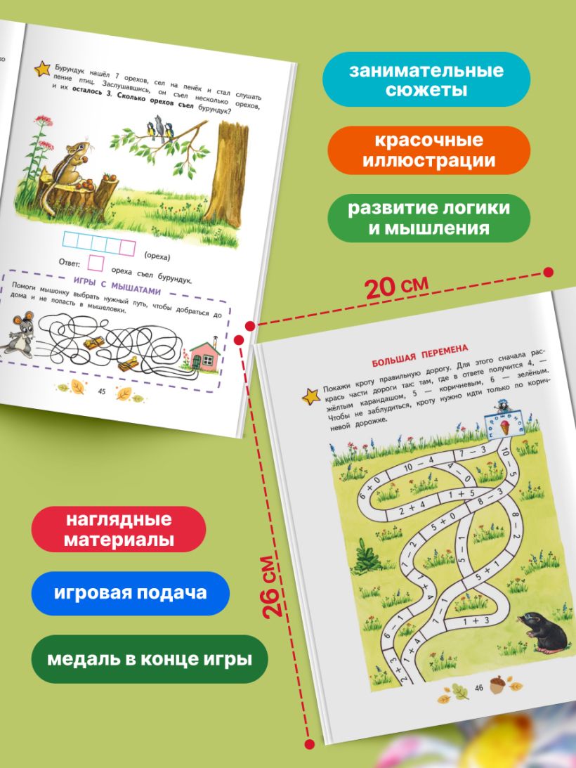 Играя, ребенок поймет, что задача — это не скучное занятие, а интересная жизненная ситуация, требующая его помощи и участия. И в школе эта сложная для многих тема не вызовет у него никаких проблем. Кроме того, выполняя задания, дошкольник сможет развить мышление, логику, внимание, мелкую моторику и навыки письма. В конце книги ребенка ждет медаль за успехи и старание.