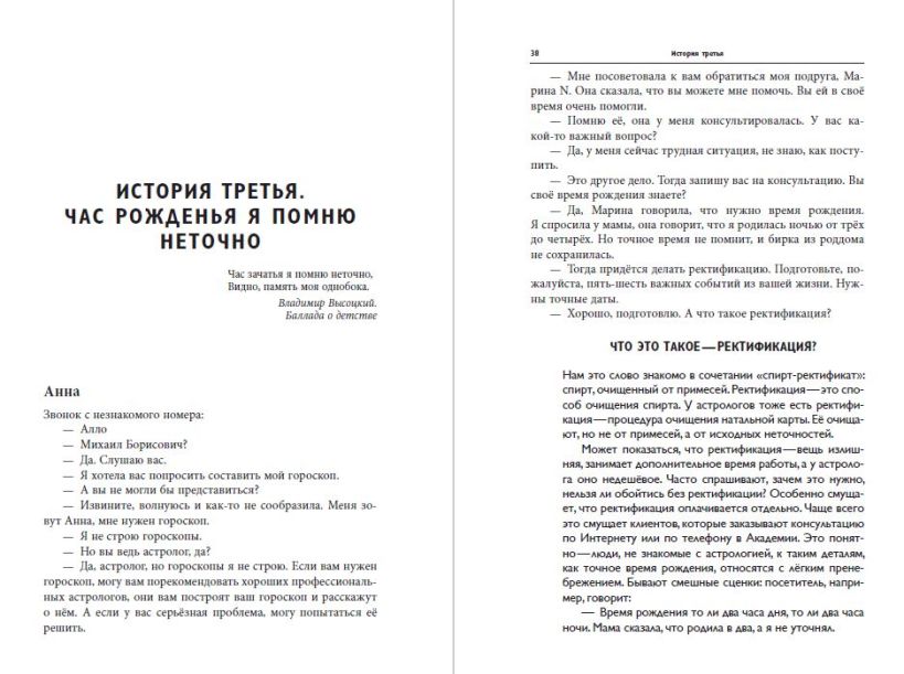 Ректор Московской Академии Астрологии Михаил Левин в своей книге рассказывает истории людей, которые благодаря науке чтения по звездам смогли получить ответы на важнейшие жизненные вопросы. Это книга мастерски написанная, очень глубокая и основана на реальном опыте автора, который работает с астрологией уже 50 лет. Бизнес-вумен, получившая "послание" о том, что пора заняться духовным ростом. Девушка, которая не может выбрать из трех претендентов на свою руку и сердце, и в конце концов понимает, что ей еще рано выходить замуж. Дама, которая бросает мужчин, потому что никак не может простить собственного отца… Мужчина, который после развода обращается к астрологу, чтобы сохранить хорошие отношения с дочерью. Сквозь призмы чужих судеб каждый может увидеть ответ и на свои вопросы.