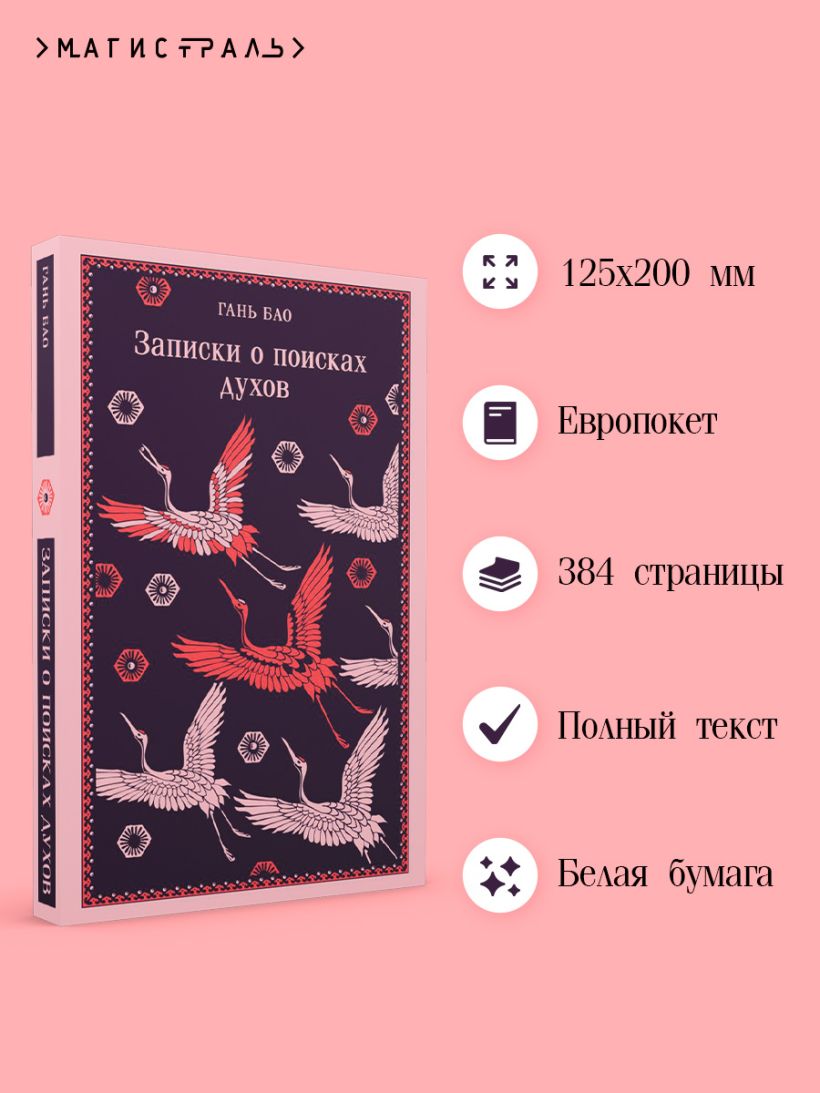 Книга знаменитого литератора Гань Бао «Записки о поисках духов» — один из древнейших и наиболее известных памятников китайской литературы, повествующий о том, «о чем не говорил Конфуций», — о разнообразнейшей нечисти: о духах гор, рек, лесов и их проделках, об отшельниках, оборотнях и чудотворцах. Гань Бао задумал свою книгу как доказательство существования духов. «Записки о поисках духов» остались в веках как наиболее универсальный и всеобъемлющий сборник фантастических рассказов, сюжеты которых используются в китайской литературе вплоть до нашего времени.
