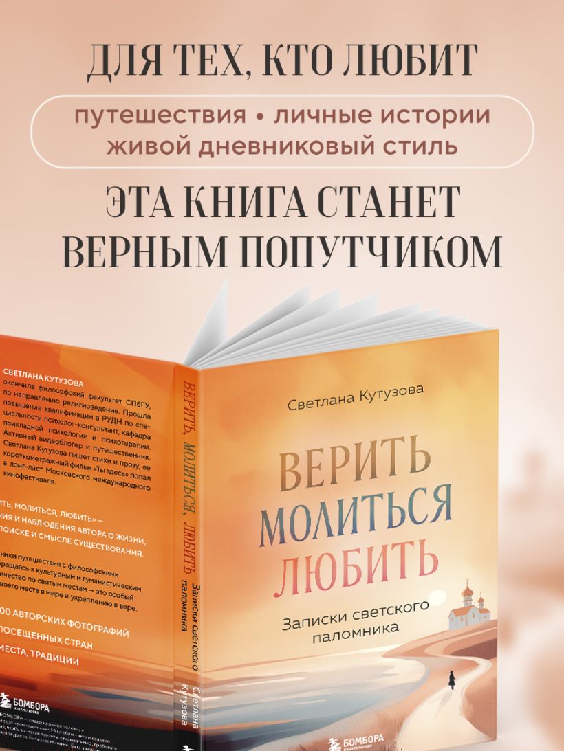 Светлана Кутузова активно пишет стихи и прозу, ее короткометражный фильм «Ты здесь» попал в лонг-лист Московского международного кинофестиваля. Ее любовь к путешествиям мотивирует смотреть мир и рассказывать о нем другим людям. Книга «Верить, молиться, любить» — размышления и наблюдения автора о жизни, духовном поиске и смысле существования. Она совмещает хроники путешествия с философскими размышлениями, обращаясь к культурным и гуманистическим ценностям.