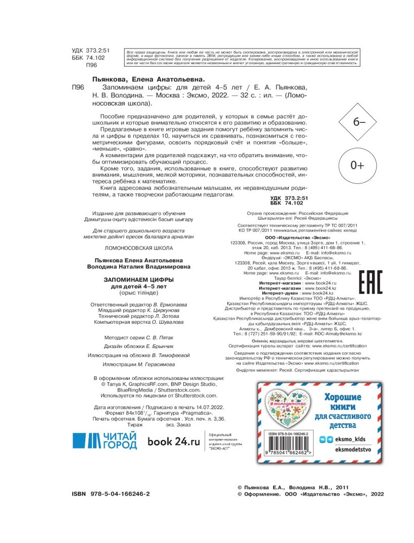 Легендарная серия обучающих пособий для развития ребенка и подготовки к школе в кратком изложении. Проверенная на практике и показавшая свою эффективность методика, умело сочетающая современные технологии обучения с лучшими классическими традициями российского образования, будет способствовать развитию у дошкольника элементарных математических представлений, сообразительности, зрительной памяти, наглядного мышления.