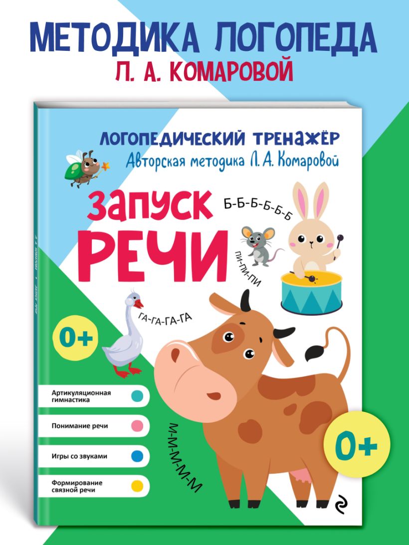В книге представлены игровые задания для поэтапного запуска речи у детей до 3 лет. Все упражнения предлагаются в порядке возрастания уровня сложности. Малыш пройдёт сложный путь от понимания речи до имитации отдельных звуков, звукоподражаний. В итоге он произнесёт первые слова и предложения. Яркие иллюстрации превратят процесс обучения в интересную игру. Выполняя упражнения, малыш разовьёт правильную артикуляцию, фонематический слух и расширит словарный запас. Автор методики Лариса Анатольевна Комарова — педагог-логопед с многолетним опытом работы. Занимаясь по её книгам, несколько поколений детей стали обладателями грамотной и красивой речи. Её методику используют педагоги различных логопедических центров. Книга Издательства «ЭКСМО» поможет родителям, воспитателям детских садов и логопедам побудить малыша заговорить и сделать речь ребёнка чёткой, красивой и выразительной. А грамотная и правильная речь — первый шаг дошкольника к успеху при поступлении в первый класс.