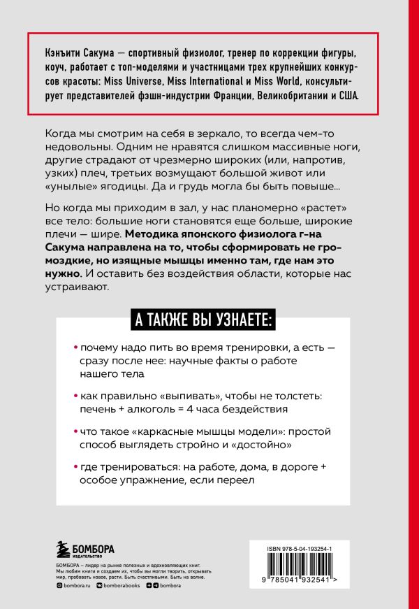 МЕТОД САКУМА: Уникальная программа, которая позволяет сделать фигуру стройной, настроить мышечный каркас и создать правильные пропорции. Чаще всего наше тело выглядит плохо из-за неравномерного развития мышц: одни сильно перегружены, другие – недополучают нагрузки. Следуя приведенным в книге упражнениям по загрузке каркасных мышц, вы начнете правильно использовать свое тело. Всего 5 упражнений и 5 минут в день изменят вашу фигуру. Никаких изнуряющих диет и высокоинтенсивных тренировок, здесь важно не переусердствовать!