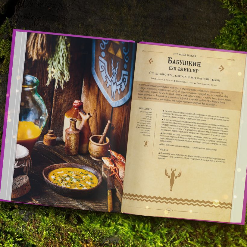 В этой захватывающей поваренной книге представлены кулинарные блюда из всех ваших любимых игр Legend of Zelda. Разработанная как записная книжка для путешествий, она рассказывает о путешествии нового персонажа Гурмана и содержит множество рецептов, вдохновленных такими играми, как Breath of the Wild, Ocarina of Time, Twilight Princess, Wind Waker и другими. Почувствуйте вкусы и ароматы далеких земель, по которым путешествовали любимые герои, и откройте заново вселенную The Legend of Zelda.