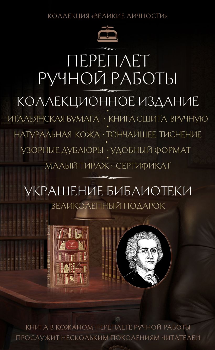 В каждом экземпляре - избранные цитаты и гравированный портрет автора, отпечатанные на дизайнерской бумаге, изготовленной на четверть из натуральной кожи. Переплеты созданы по традиционной для 19 века технологии из гладкой натуральной кожи и украшены тремя видами рельефного тиснения - золотым, рельефным и красочным.
