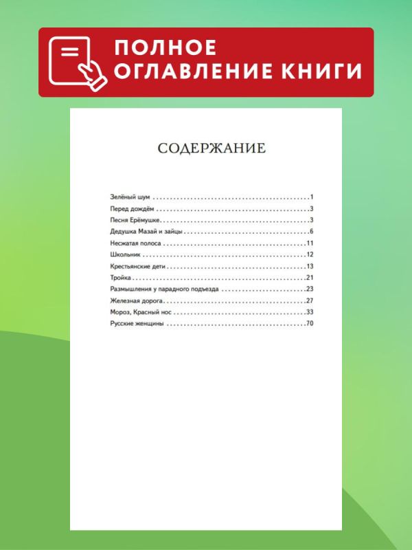 В сборник включены наиболее известные произведения одного из классиков русской поэзии XIX века Николая Некрасова. В их числе поэмы «Мороз, Красный нос» и «Русские женщины», а также программные стихотворения «Дедушка Мазай и зайцы», «Крестьянские дети» и другие.