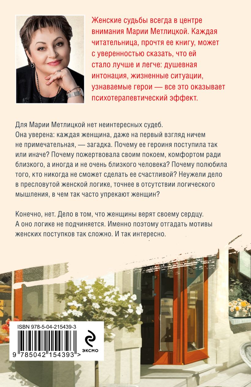 Для Марии Метлицкой нет неинтересных судеб. Она уверена: каждая женщина, даже на первый взгляд ничем не примечательная, — загадка. Почему ее героиня поступила так или иначе? Почему пожертвовала своим покоем, комфортом ради близкого, а иногда и не очень близкого человека? Почему полюбила того, кто никогда не сможет сделать ее счастливой? Неужели дело в пресловутой женской логике, точнее, в отсутствии логического мышления, в чем так часто упрекают женщин?