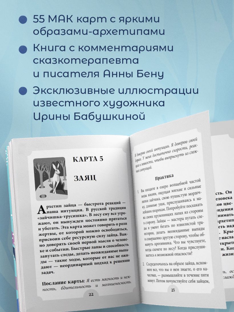 Как узнать себя настоящую? Как соединиться со своей глубинной душой, которая знает ответы на все вопросы? Психолог и сказкотерапевт Анна Бену и художник Ирина Бабушкина создали колоду ярких метафорических карт с архетипами и стихиями, обращаясь к которым, вы можете понять свое истинное «я», исцелить травмы и ответить на сокровенные вопросы.