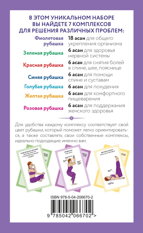 ЙОГА-КАРТЫ: уникальный продукт с заранее продуманными комплексами, направленными на решение конкретных проблем. Удобный формат позволит вам взять их куда угодно и использовать для самостоятельных занятий дома, в зале или на свежем воздухе. Подойдут всем, кто хочет заняться своим здоровьем.