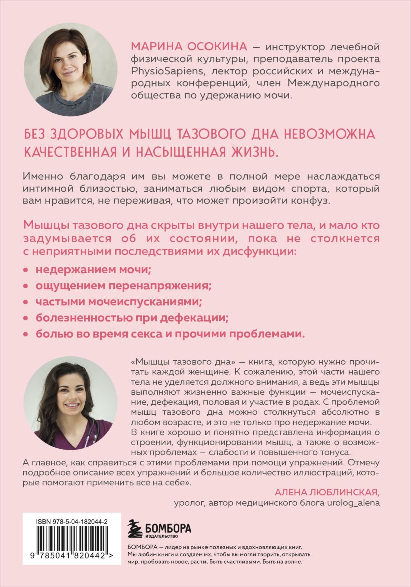 МЫШЦЫ ТАЗОВОГО ДНА: Книга Марины Осокиной подскажет вам, почему важно поддержать здоровье мышц тазового дна и как это сделать. Вы узнаете, как устроен малый таз, как вес, возраст, беременность, роды, осанка, дыхание и другие факторы влияют на тонус его мышц. Помимо полезной теоретической базы, найдете в ней упражнения для занятий в домашних условиях и увидите, какие разнообразные техники для тренировки мышц тазового дна существуют. Все упражнения и техники автор сопроводила пошаговыми рисунками и подробными объяснениями, чтобы повторить их мог даже новичок, а в конце книги предложила три готовых комплекса упражнений на выбор.