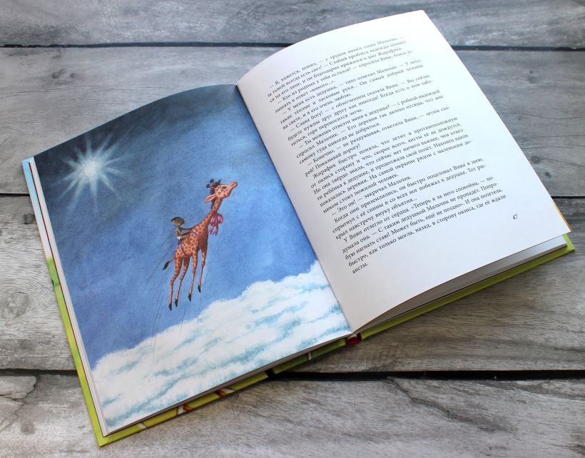 Как отличить обыкновенного жирафа от волшебного? О, это может быть совсем не просто! На первый взгляд Жирафик Виви выглядит, как обычный жирафёнок, но при этом умеет разговаривать на разных языках и… лететь! Виви преодолела множество препятствий, чтобы добраться из калифорнийского зоопарка в африканскую саванну и разыскать там своего Старшего Брата. А теперь ей пора собираться в обратный путь. Какие приключения ждут отважного и очень доброго Жирафика по дороге домой?