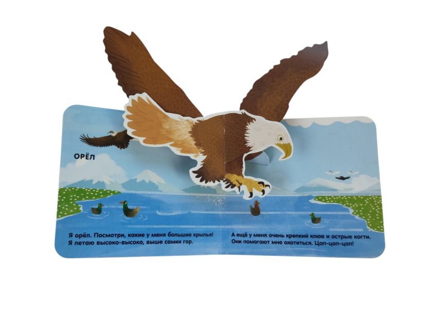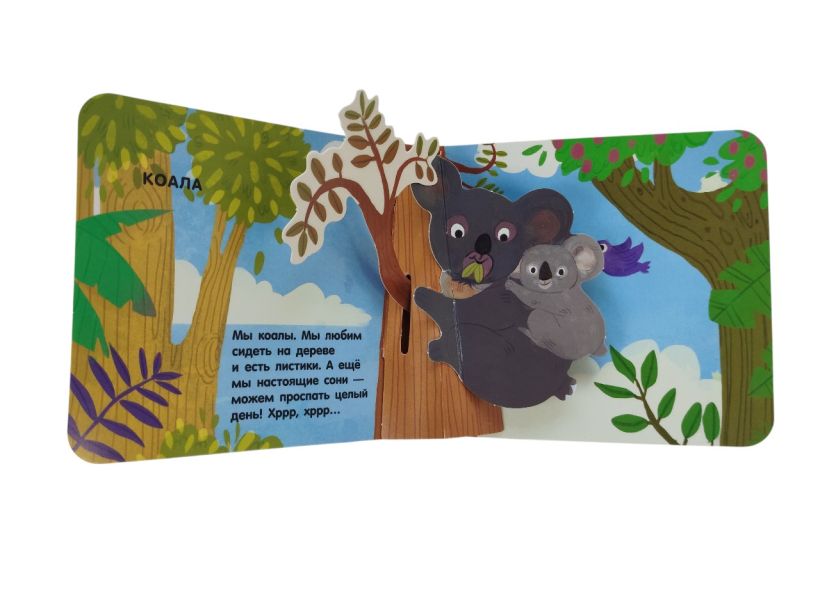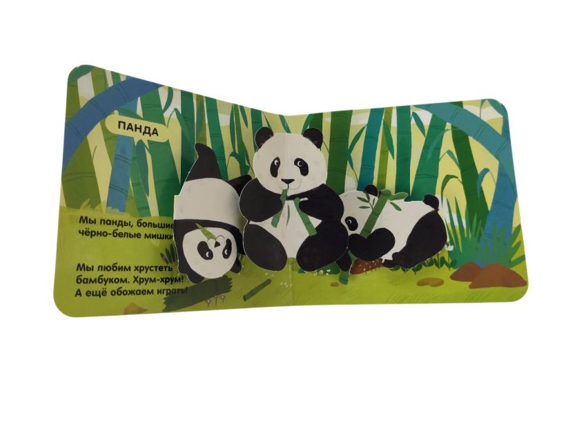 На каждой странице тебя ждут объёмные элементы и pop-up панорамки. Играй с подвижными деталями и развивай мелкую моторику! А ещё узнай интересные факты про животных в интерактивной книжке для самых маленьких.