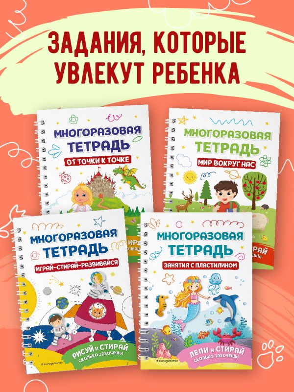 Познавательное и увлекательное пособие позволит вашему ребенку не только весело, но и с пользой провести время. В издании ламинированные страницы, благодаря чему в книге можно рисовать фломастерами, стирать влажной салфеткой и писать снова! Бесконечное количество раз! Простые и интуитивно понятные задания помогут развить воображение, мышление и мелкую моторику малыша.
