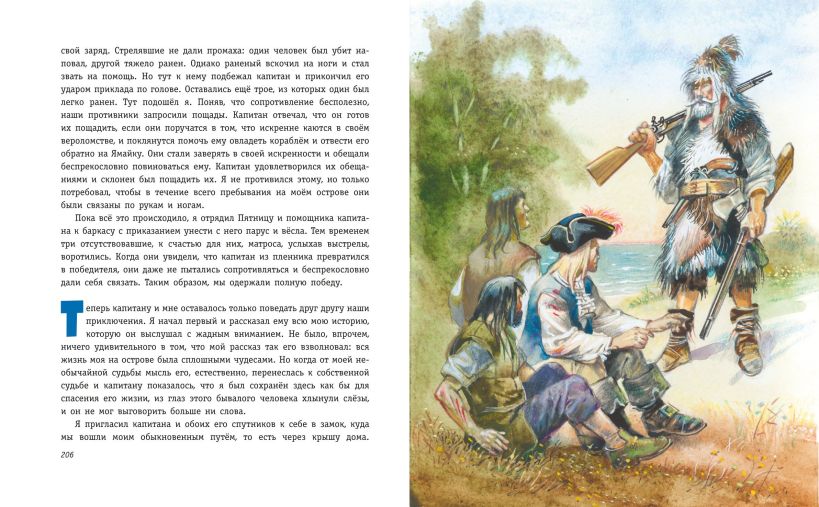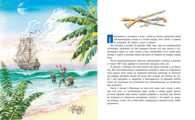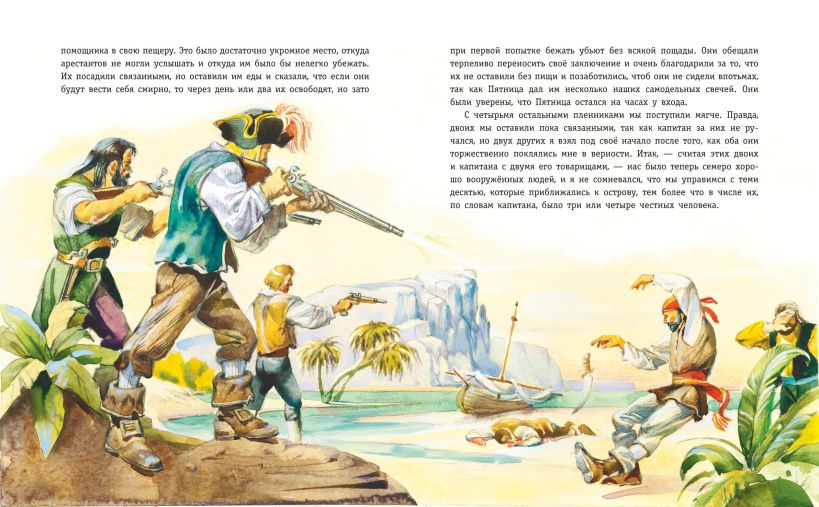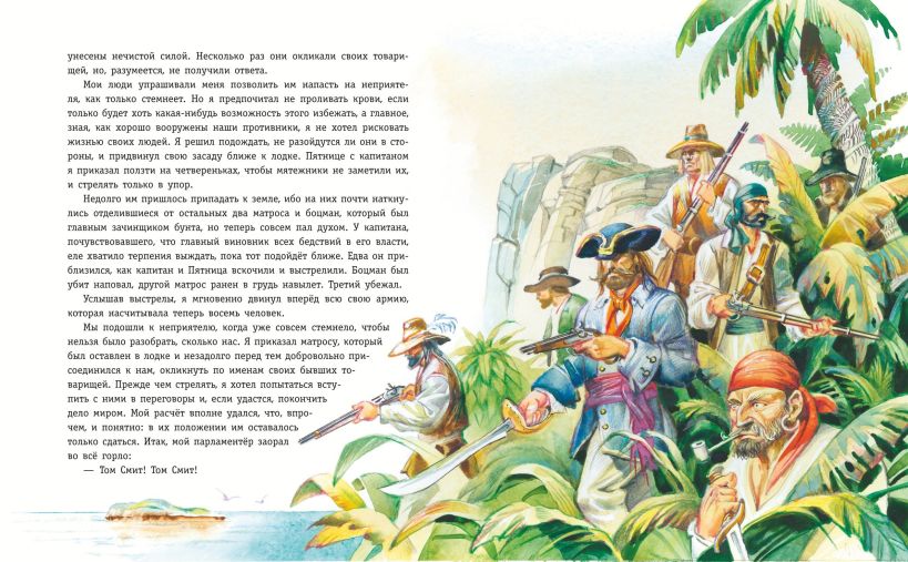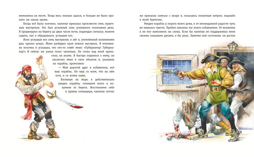 Роскошные виды тропического острова, старинные парусники, идиллические картины мирного бытия и жестокие схватки с каннибалами и пиратами встают перед нашими глазами благодаря ярким и детальным иллюстрациям известного петербургского художника Владимира Канивца.