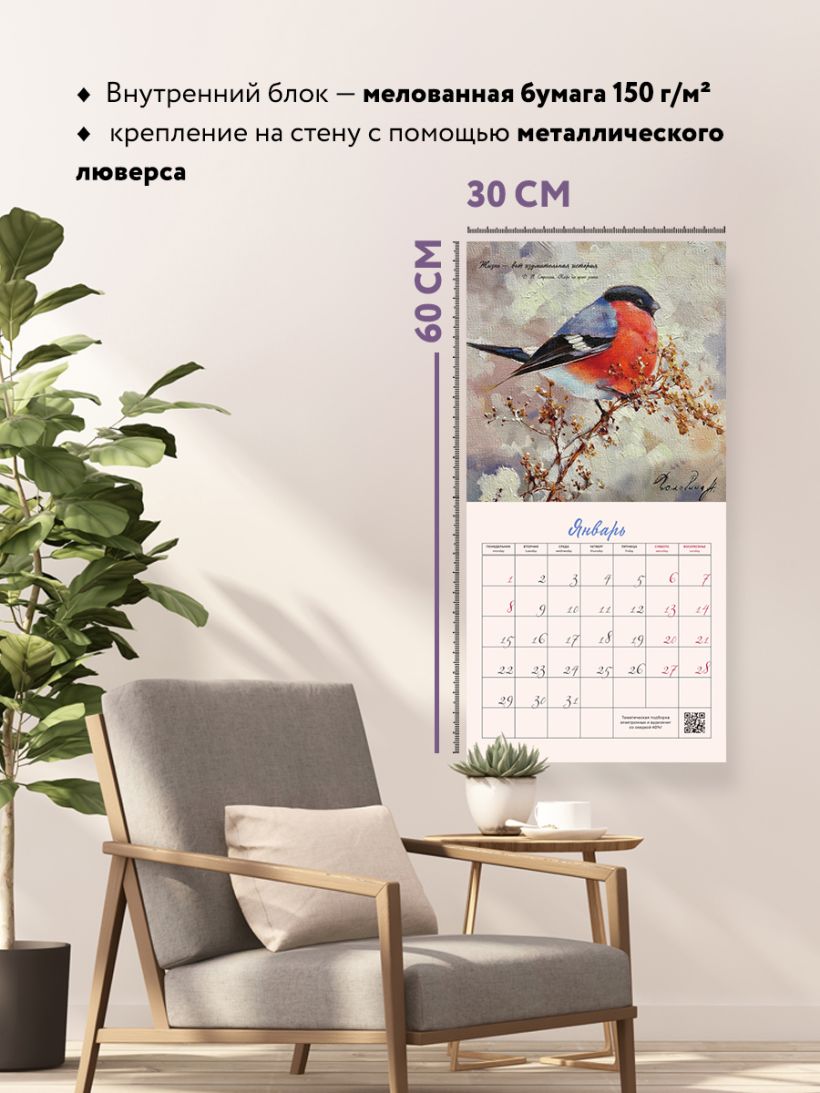 Наши настенные календари отличаются высоким качеством исполнения! Тщательно подобранные иллюстрации, напечатанные на глянцевой бумаге высочайшего качества, станут настоящим украшением дома, а в календарной сетке найдется место для ваших планов: большие клетки позволят делать записи и организовать свой год!