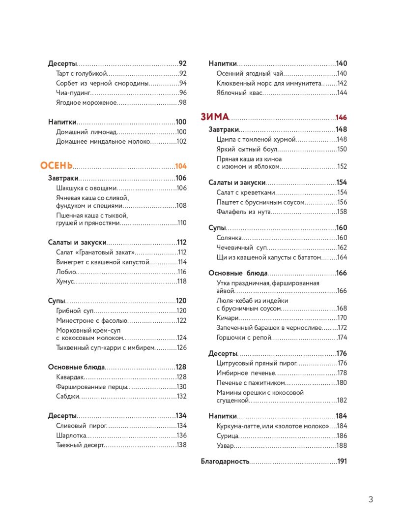 «Структурированная информация о сезонном питании, помогающая адаптировать состояние здоровья человека к временам года. Книга сочетает в себе одновременно “вкусную” подачу рецептов и научное обоснование действия полезных ингредиентов и способа приготовления». — Ирина Мальцева, биолог, генетик, ведущий эксперт Университета образовательной медицины