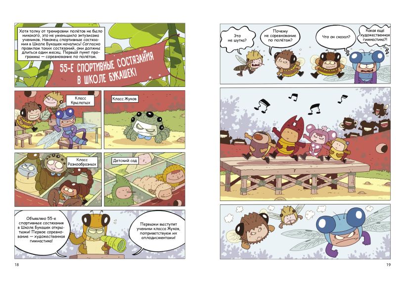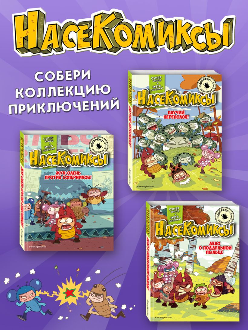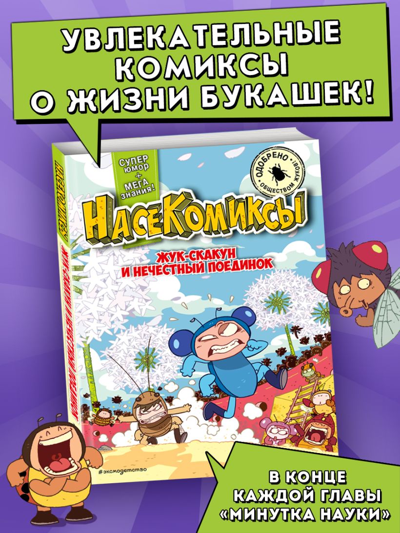 Впервые в России — серия познавательных комиксов про насекомых! Герои комикса — совсем как настоящие дети: ходят в школу, дружат, попадают в переделки, но… все они — НАСЕКОМЫЕ!