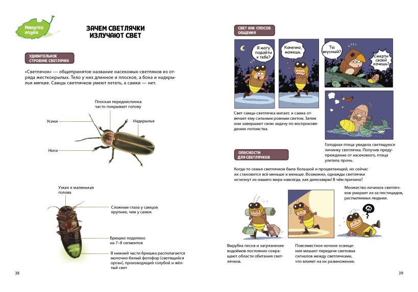 Присоединяйся к приключениям крутых букашек, читай о них смешные истории в формате красочного комикса — и одновременно узнавай самые любопытные научные факты о жуках, бабочках и других насекомых! В конце каждой главы этой веселой энциклопедии про насекомых тебя ждут познавательные страницы о жизни и устройстве этих удивительных существ!