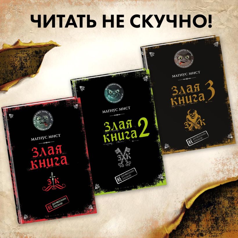 Первая книга международной серии-бестселлера — только в России продано более 600 000 экземпляров! Уникальный формат, сочетающий художественный текст + квест + разнообразные задания для читателей = книга-квест. Это издание создано для тех, кто считает, что читать — это скучно. Оно не оставит никаких сомнений, что с книгами можно классно проводить время: подтверждено тысячами положительных отзывов родителей! Секрет успеха серии в том, что книга ведёт живой, юмористический диалог с читателем, рассказывает ему страшные истории и приглашает в авантюрное приключение. Чтобы пройти всю книгу до конца (принимая решения на сюжетных развилках и переходя по разным страницам не по порядку), нужно разгадать немало загадок и головоломок, которые развивают внимание и мышление. В этот раз злюка испортила Рождество, и только самый смелый читатель сможет всё исправить. Фишка издания: запечатанные страницы, которые нужно разрезать только по две в день! Книга-игра, которую можно рассматривать как подарок на Новый год и Рождество, содержит множество атмосферных цветных иллюстраций и красивые шрифты. «Книга-адвент» — это новогодний подарок для мальчика и девочки 7—11 лет. Ещё выпущены специальные издания «Читай с друзьями» и «Головоломки», а также подсерия для подростков 11—13 лет «Злая книга».