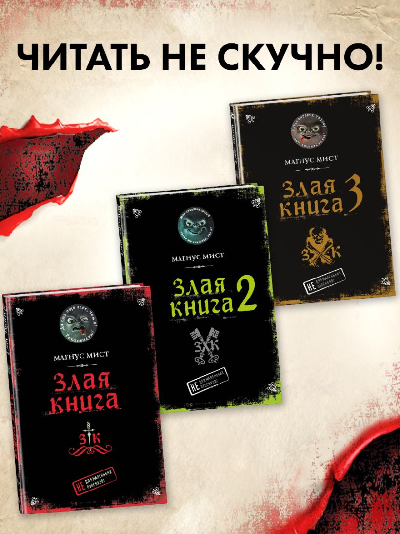 Это очень необычная книга! Ведь на её страницах спрятаны настоящие магические заклинания, парочка монстров и целое море загадок! «Злая книга» ищет читателя, который готов пройти запутанный квест и стать обладателем Чёрного амулета. Этот артефакт наделит своего хозяина огромной волшебной силой. И, кажется, следующим всемогущим магом можешь стать именно ТЫ! Ведь ты не трусливый зайка и точно не испугаешься историй «Злой книги». Приготовься к захватывающему приключению и скорее открывай первую страницу!