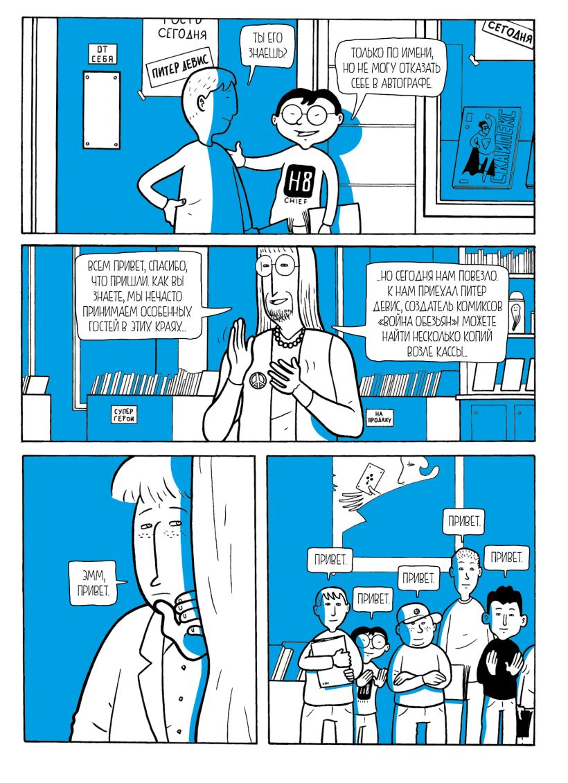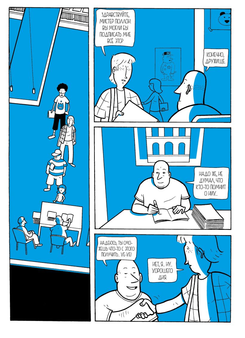 P.S. А ещё комикс оформлен в синем цвете, а синий успокаивает. Очень кстати.