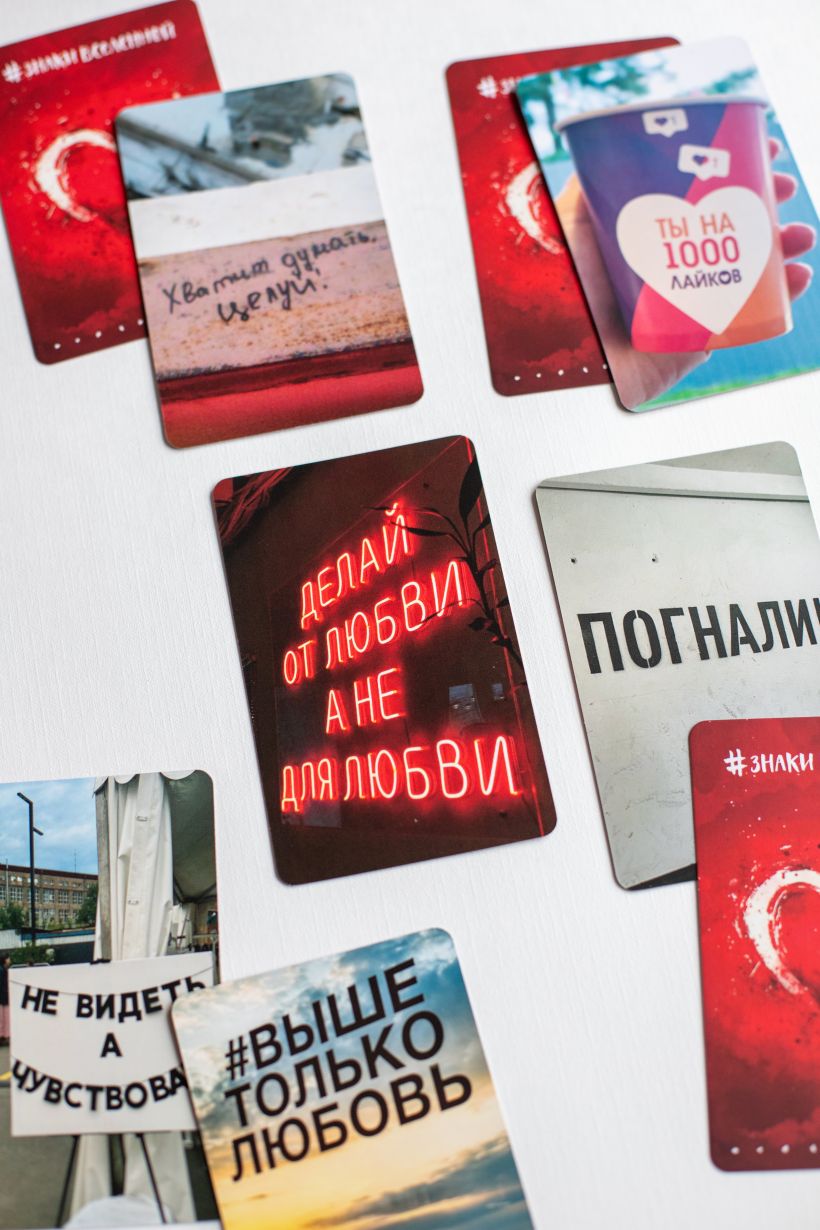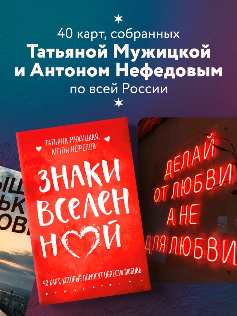 Если задать вопрос Вселенной, она обязательно ответит. Даст знак. Это может быть граффити на стене, рекламный плакат или надпись на футболке прохожего. С авторской колодой знаков Татьяны Мужицкой и Антона Нефедова вам не придется долго бродить по улицам в ожидании послания свыше. Карты в этой колоде — не просто изображения, это история одного из нас, одного знака, одной рожденной мысли, одного принятия и многих реальных шагов, которые меняют нашу жизнь к лучшему. Авторы собирали эти знаки по всей стране, чтобы сейчас вы смогли расслабиться и поговорить со Вселенной.
