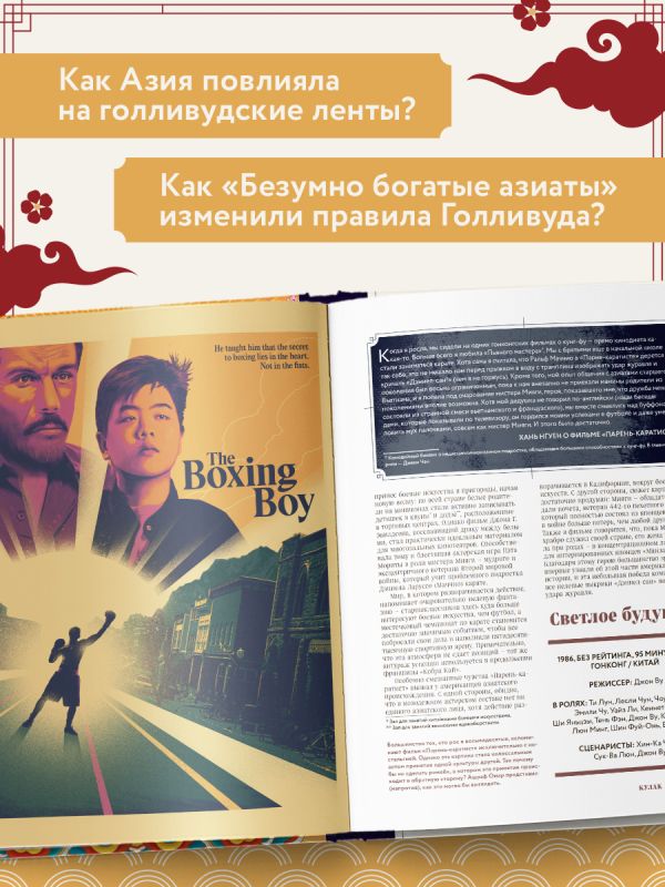 Специально для книги были созданы оригинальные полноцветные иллюстрации, которые позволяют тоньше ощутить азиатскую эстетику, а многочисленные фотографии и печать на плотной бумаге делают ее прекрасным подарком для всех ценителей кинематографа и тех, кто увлекается голливудскими фильмами и восхищается эстетикой Азии!