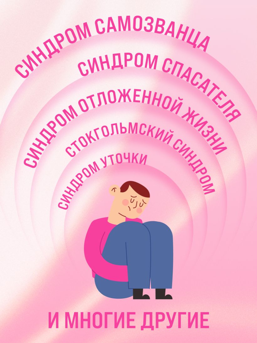 В него вошли статьи как про всем известные синдромы, вроде самозванца, отличника и спасателя, так и про те, о которых редко можно прочитать в открытых источниках. Например, о синдроме сбитого летчика, пустого гнезда, мачехи принцессы или уточки.