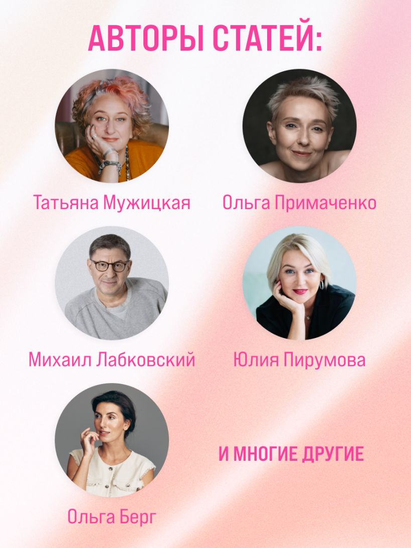 Авторы — признанные психотерапевты и бизнес-коучи: Лабковский, Мужицкая, Примаченко и другие.