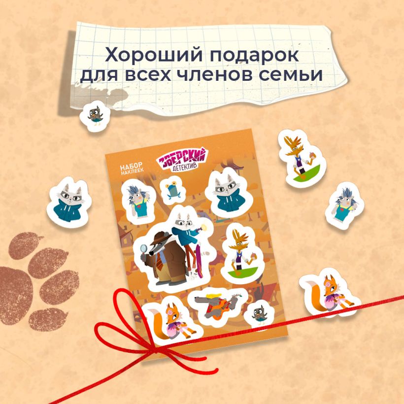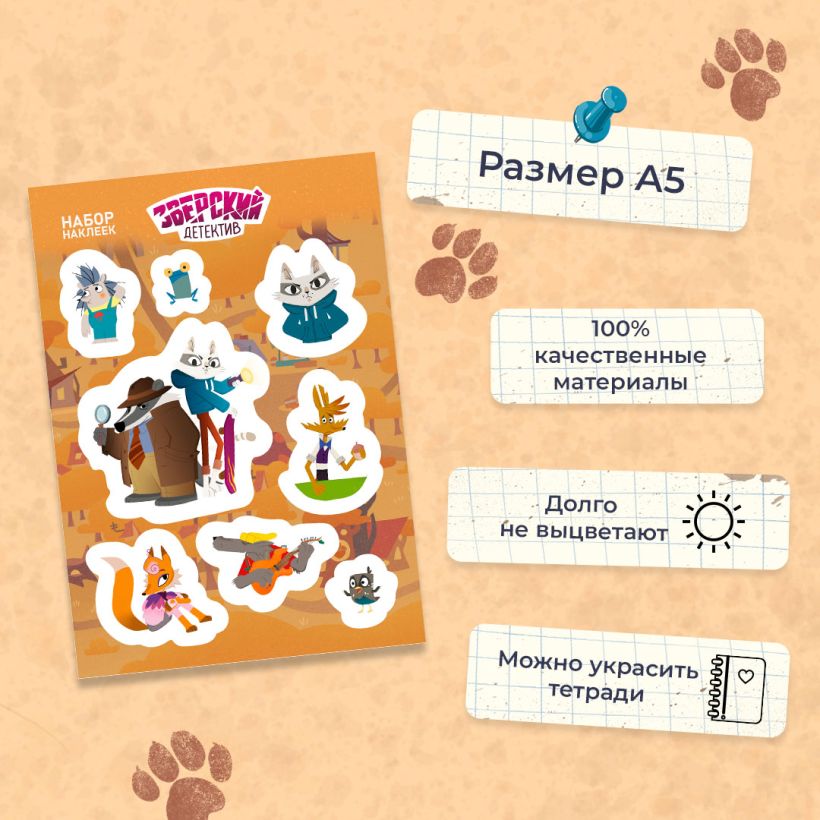 Набор наклеек сделан к премьере мультсериала «Зверский детектив». Мультсериал создан на основе цикла романов Анны Старобинец.