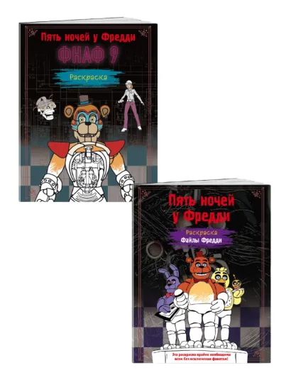 «Five Nights at Freddy’s» (Пять ночей у Фредди или ФНаф) — серия книг по мотивам культовой компьютерной игры в жанре хоррор, которая стала одной из самых популярных игр в своей нише, а также удостоилась высоких оценок критиков за уникальный подход. Действия разворачиваются в пиццерии «Freddy Fazbear’s Pizza». По сюжету участнику приходится спасаться от аниматроников, роботов-животных, которые однажды из игрушек-талисманов пиццерии превратились в кровожадных существ и по ночам ведут жестокую охоту на людей. Всего в игре (и в книгах серии) четыре аниматроника: курица Чика, кролик Бонни, лис Фокси и медведь Фредди.